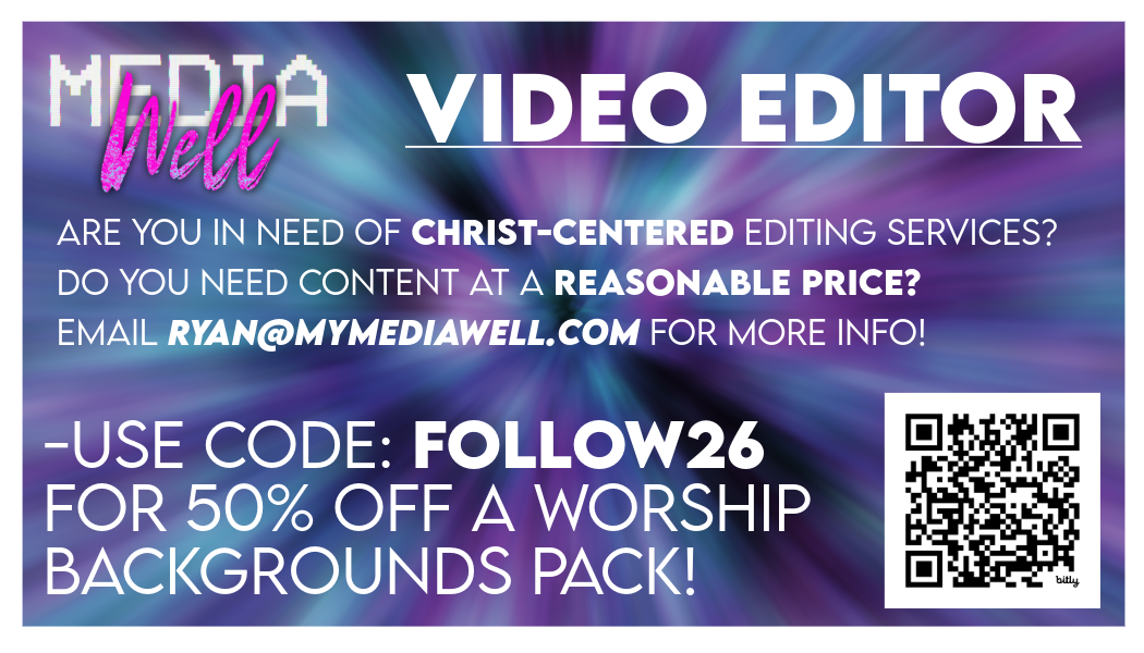 Ryan Honeywell offers various media services. He has been the main videographer for The Bridge Church for several years and is looking to expand his passion to other churches in the network. If you have video needs and for worship motion backgrounds. check out his website.